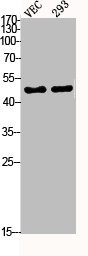 • Western Blot analysis of VEC 293 cells using Phospho-MEK-2 (T394) Polyclonal Antibody