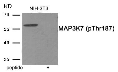 免疫原:Peptide sequence around phosphorylation site of threonine 187 (H-M-T(p)-N-N) derived from Human MAP3K7.