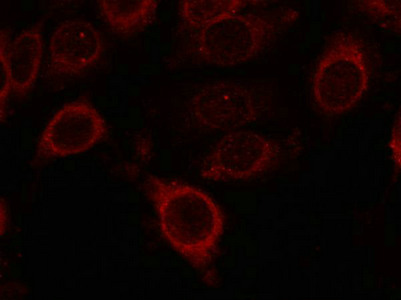 Immunofluorescence staining of methanol-fixed MCF cells using mTOR(Phospho-Ser2448) Antibody.