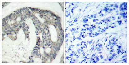 純化方式:Antibodies were produced by immunizing rabbits with synthetic phosphopeptide and KLH conjugates. Antibodies were purified by affinity-chromatography using epitope-specific phosphopeptide. Non-phospho specific antibodies were removed by chromatogramphy usi