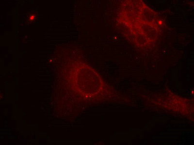 • Immunofluorescence staining of methanol-fixed Hela cells using Shc1(Phospho-Tyr349) Antibody.
