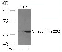 免疫原:Peptide sequence around phosphorylation site of threonine 220 (P-E-T(p)-P-P) derived from Human Smad2.