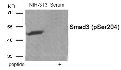 免疫原:Peptide sequence around phosphorylation site of serine204(A-G-S(p)-P-N) derived from Human Smad3 .