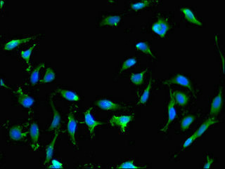 • Immunofluorescent analysis of Hela cells using CSB-PA019175LA01HU at dilution of 1:100 and Alexa Fluor 488-congugated AffiniPure Goat Anti-Rabbit IgG(H+L)