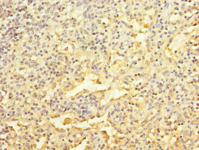 • Immunohistochemistry of paraffin-embedded human spleen tissue using CSB-PA821676LA01HU at dilution of 1:100