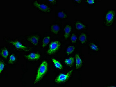 Immunofluorescent analysis of A549 cells using CSB-PA887109LA01HU at dilution of 1:100 and Alexa Fluor 488-congugated AffiniPure Goat Anti-Rabbit IgG(H+L)