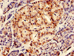 Immunohistochemistry of paraffin-embedded human pancreatic tissue using CSB-PA019651LA01HU at dilution of 1:100