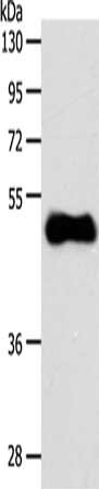 • Gel: 10%SDS-PAGE, Lysate: 40 μg, Lane: Human fetal brain tissue, Primary antibody: CSB-PA682555(S1PR3 Antibody) at dilution 1/700, Secondary antibody: Goat anti rabbit IgG at 1/8000 dilution, Exposure time: 20 seconds