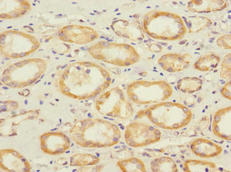 Immunohistochemistry of paraffin-embedded human kidney tissue using CSB-PA875672ESR2HU at dilution of 1:100
