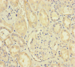Immunohistochemistry of paraffin-embedded human kidney tissue using CSB-PA840987ESR2HU at dilution of 1:100
