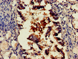 Immunohistochemistry of paraffin-embedded human ovarian cancer using CSB-PA020865LA01HU at dilution of 1:100