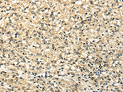 The image on the left is immunohistochemistry of paraffin-embedded Human prostate cancer tissue using CSB-PA762477(SEMA4F Antibody) at dilution 1/30, on the right is treated with fusion protein. (Original magnification: ×200)