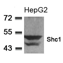 • Western blot analysis of extracts from HepG2 cells using Shc1(Ab-349) Antibody.
