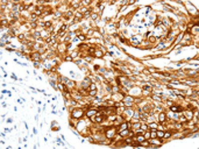The image on the left is immunohistochemistry of paraffin-embedded Human cervical cancer tissue using CSB-PA948911(SIPA1 Antibody) at dilution 1/40, on the right is treated with synthetic peptide. (Original magnification: ×200)
