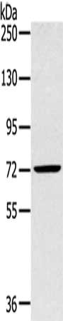 Gel: 6%SDS-PAGE, Lysate: 40 μg, Lane: Mouse liver tissue, Primary antibody: CSB-PA218953(SLC27A5 Antibody) at dilution 1/250, Secondary antibody: Goat anti rabbit IgG at 1/8000 dilution, Exposure time: 2 minutes