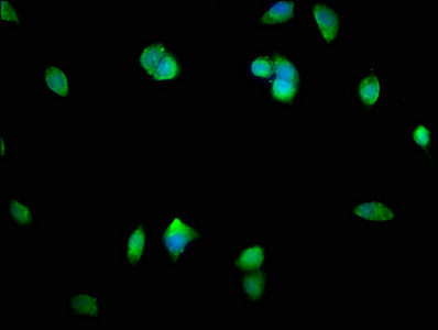 Immunofluorescent analysis of Hela cells using CSB-PA618998HA01HU at dilution of 1:100 and Alexa Fluor 488-congugated AffiniPure Goat Anti-Rabbit IgG(H+L)