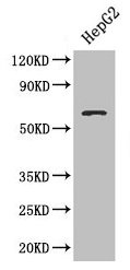 Lane 2: CSB-PA619768LA01HU (8µg) + Jurkat whole cell lysate (500µg)