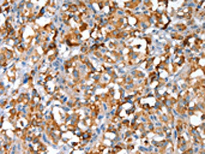 • The image on the left is immunohistochemistry of paraffin-embedded Human thyroid cancer tissue using CSB-PA991705(SNAI1 Antibody) at dilution 1/30, on the right is treated with fusion protein. (Original magnification: ×200)