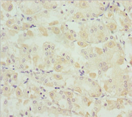 Immunohistochemistry of paraffin-embedded human gastric cancer using CSB-PA021874ESR2HU at dilution of 1:100