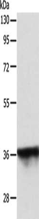 Gel: 10%SDS-PAGE, Lysate: 40 μg, Lane: MCF7 cells, Primary antibody: CSB-PA807056(SPATA2L Antibody) at dilution 1/500, Secondary antibody: Goat anti rabbit IgG at 1/8000 dilution, Exposure time: 30 seconds