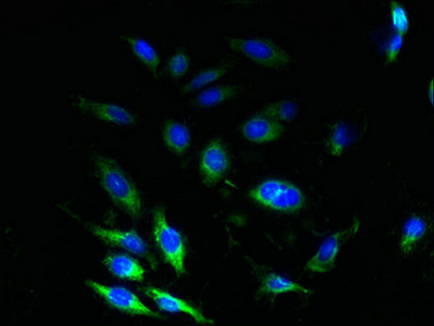 Immunofluorescent analysis of Hela cells using CSB-PA892358LA01HU at dilution of 1:100 and Alexa Fluor 488-congugated AffiniPure Goat Anti-Rabbit IgG(H+L)