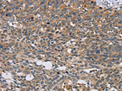 • The image on the left is immunohistochemistry of paraffin-embedded Human cervical cancer tissue using CSB-PA130463(STAT4 Antibody) at dilution 1/30, on the right is treated with fusion protein. (Original magnification: ×200)