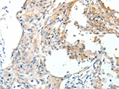 The image on the left is immunohistochemistry of paraffin-embedded Human cervical cancer tissue using CSB-PA795802(STEAP4 Antibody) at dilution 1/40, on the right is treated with synthetic peptide. (Original magnification: ×200)