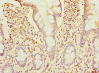 Immunohistochemistry of paraffin-embedded human small intestine tissue using CSB-PA022903DSR1HU at dilution of 1:100