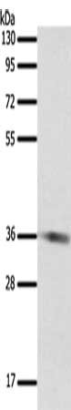 Gel: 10%SDS-PAGE, Lysate: 40 μg, Lane: 231 cells, Primary antibody: CSB-PA124064(SULT1E1 Antibody) at dilution 1/500, Secondary antibody: Goat anti rabbit IgG at 1/8000 dilution, Exposure time: 30 seconds