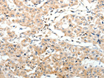 The image on the left is immunohistochemistry of paraffin-embedded Human liver cancer tissue using CSB-PA117413(SV2A Antibody) at dilution 1/25, on the right is treated with synthetic peptide. (Original magnification: ×200)