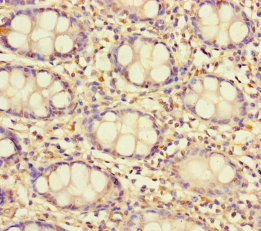 Immunohistochemistry of paraffin-embedded human colon tissue using CSB-PA889153LA01HU at dilution of 1:100