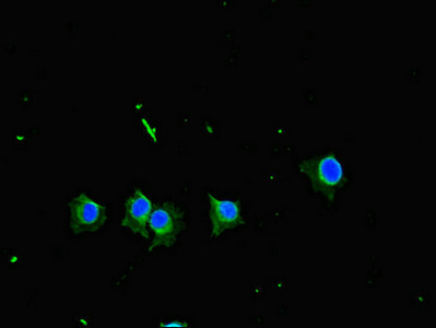 Immunofluorescent analysis of Hela cells using CSB-PA023232LA01HU at dilution of 1:100 and Alexa Fluor 488-congugated AffiniPure Goat Anti-Rabbit IgG(H+L)