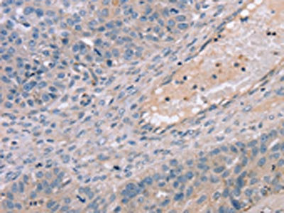 • The image on the left is immunohistochemistry of paraffin-embedded Human breast cancer tissue using CSB-PA912041(TERT Antibody) at dilution 1/35, on the right is treated with synthetic peptide. (Original magnification: ×200)