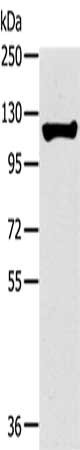 • Gel: 6%SDS-PAGE, Lysate: 40 μg, Lane: Human fetal liver tissue, Primary antibody: CSB-PA912041(TERT Antibody) at dilution 1/200, Secondary antibody: Goat anti rabbit IgG at 1/8000 dilution, Exposure time: 20 seconds