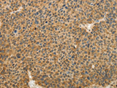 The image on the left is immunohistochemistry of paraffin-embedded Human liver cancer tissue using CSB-PA913011(TFPI2 Antibody) at dilution 1/30, on the right is treated with fusion protein. (Original magnification: ×200)
