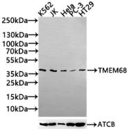 免疫原:Recombinant Human Transmembrane protein 68 protein (74-114AA)
