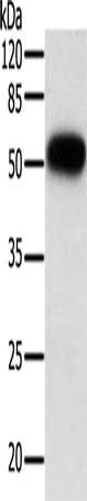 • Gel: 10%SDS-PAGE, Lysate: 40 μg, Lane: A549 cells, Primary antibody: CSB-PA018500(TNFRSF10B Antibody) at dilution 1/500, Secondary antibody: Goat anti rabbit IgG at 1/8000 dilution, Exposure time: 10 seconds