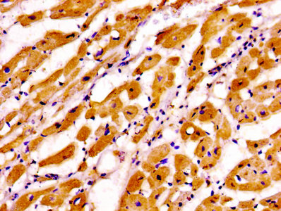 Immunohistochemistry of paraffin-embedded human heart tissue using CSB-PA07939A0Rb at dilution of 1:100