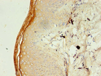 • Immunohistochemistry of paraffin-embedded human skin tissue using CSB-PA880153LA01HU at dilution of 1:100