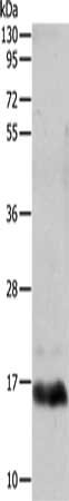 • Gel: 8+10%SDS-PAGE, Lysate: 20 μg, Lane: Mouse serum, Primary antibody: CSB-PA041819(TTR Antibody) at dilution 1/250, Secondary antibody: Goat anti rabbit IgG at 1/8000 dilution, Exposure time: 10 seconds