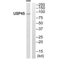 • Western blot analysis of extracts from A549 cells, using USP45 antibody.