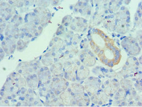 Immunohistochemistry of paraffin-embedded human pancreatic tissue using CSB-PA025771ESR2HU at dilution of 1:100