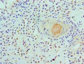• Immunohistochemistry of paraffin-embedded human thyroid tissue using CSB-PA026038ESR2HU at dilution of 1:100