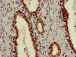 Immunohistochemistry of paraffin-embedded human prostate cancer using CSB-PA01617A0Rb at dilution of 1:100