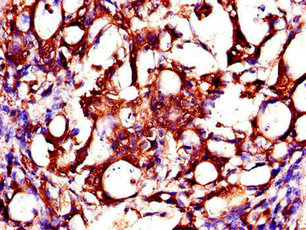 Immunohistochemistry of paraffin-embedded human gastric cancer using CSB-PA026504LA01HU at dilution of 1:100