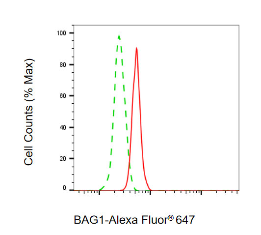Flow cytometric analysis of BAG1 expression in C2C12 cells using BAG1 antibody. Green, isotype control; red, BAG1.