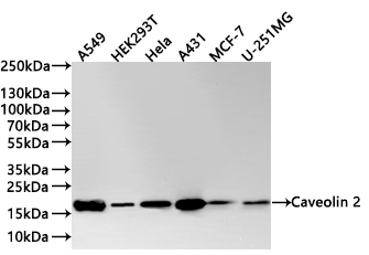 All lanes: Caveolin 2 antibody at 1:1000
