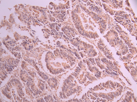 IHC image of CSB-RA093733A0HU diluted at 1:100 and staining in paraffin-embedded human colorectal cancer performed on a Leica BondTM system. After dewaxing and hydration, antigen retrieval was mediated by high pressure in a citrate buffer (pH 6.0). Section was blocked with 10% normal goat serum 30min at RT. Then primary antibody (1% BSA) was incubated at 4°C overnight. The primary is detected by a Goat anti-rabbit polymer IgG labeled by HRP and visualized using 0.05% DAB.