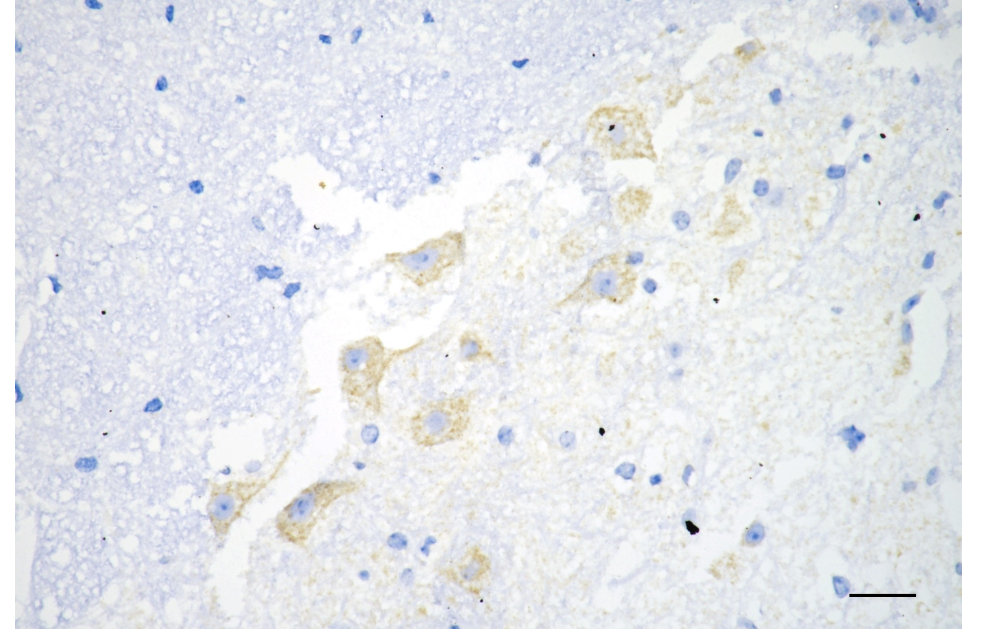 Immunohistochemistry was performed on paraffin-embedded mouse brain using COXIV antibody. Antigen retrieval was done in sodium citrate buffer (pH 6.0). DAB was used for detection, with hematoxylin counterstaining. Images were acquired using a Nikon Ci-L Plus microscope (40× objective). Scale bar: 25 μm.