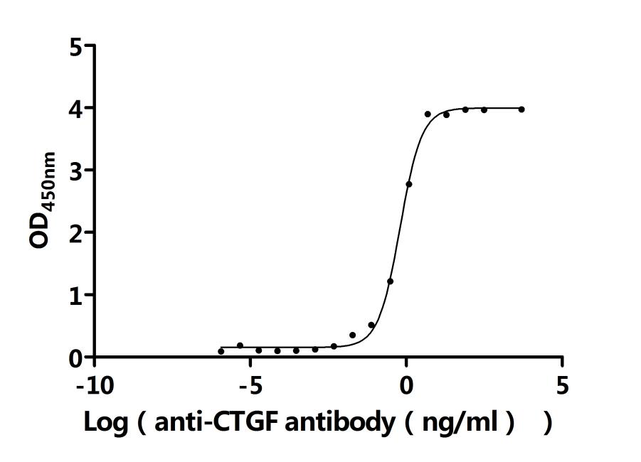 Activity: Measured by its binding ability in a functional ELISA. Immobilized Human CTGF (CSB-MP006147HU) at 2 μg/mL can bind Anti-CTGF recombinant antibody. The EC50 is 0.5470-0.7308 ng/mL.
